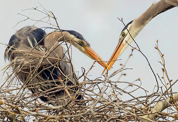 The male heron flew to the tree with a twig. He slowly walked down the branch and presented it to his mate as if presenting her a special gift. A... more